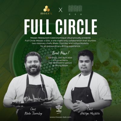 Join us for an extraordinary evening where past and present collide, as Chefs Blake and Aditya craft a 6-course menu showcasing their journey, on Saturday, April 12, 2025, at Mozaic Dining Room, Ubud, for IDR 1,600,000++ per person.